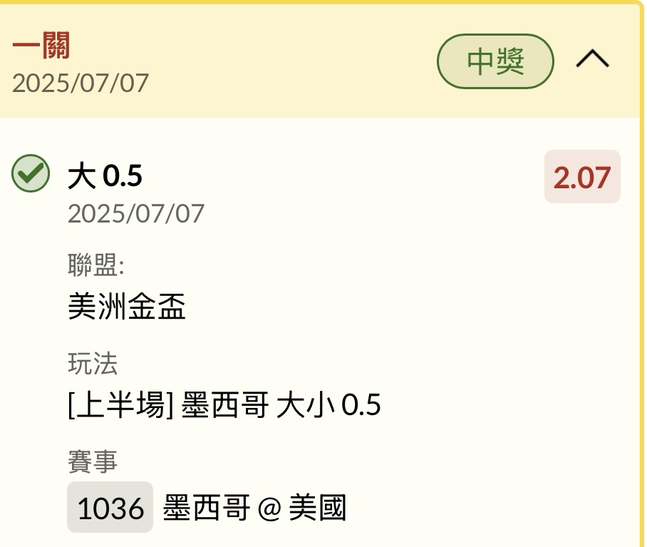 推 twchih018: 2.5大和墨西哥下一球痛苦收 101.10.94.28 07/07 08:46