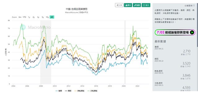 目前中國各鋼現貨價格約處在16、17年水平也不算太高