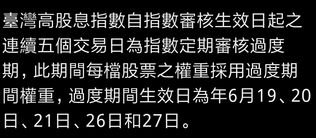 CloudyWing : 對應過渡期間生效日的就是26號最後一盤調整完,27 06/27 15:31