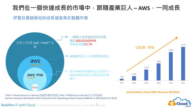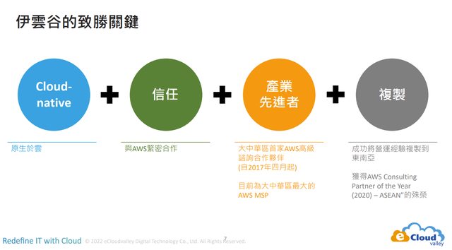 少數具有四大公有雲(AWS.Azure.GOOGLE.Oracle)的業者 去年 3/31 Snowflake 和 eCloudvalley一起舉辦為期半天的免費早餐課程在雅加達 http s://i.imgur.com/XB8n9Uj.png 伊雲谷雲端營收的成長速度高於整體市場 https://i.imgur.com/jGhAXAy.png