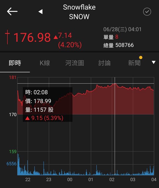 WADE0616 : snowflake 400腰斬到17x 大漲5% 06/28 10:41