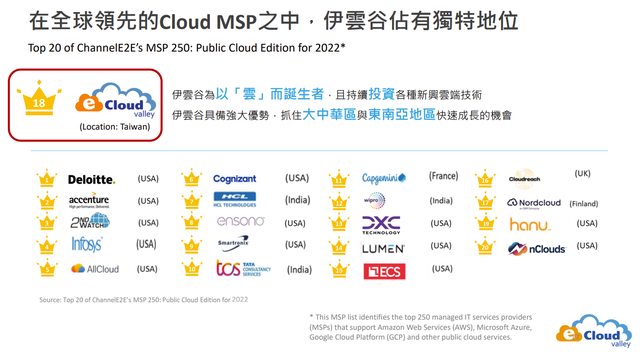 Top 20 of ChannelE2E’s MSP 250: Public Cloud Edition for 2022 2022年全球公有雲MSP 250強名單第18名 https://i.imgur.com/gszOxFP.png