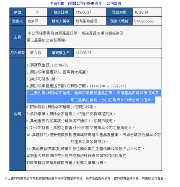 1. 標的:4546長亨 2. 分類:多 3. 分析/正文: 公司昨天公告接獲國際航太集團的商用飛機新產品訂單、高階產品市場份額提高及軍工品 展約業務31億合約訂單 長亨股本僅3.39億元,今天底部起漲第一根,其他軍工概念股之前都至少大漲5成以上了 ,後續應該還有波段漲勢 https://i.imgur.com/La1NPBp.png