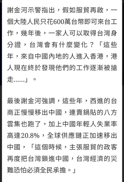 → coolchin : 一位是台商,一位是經濟雜誌社長,說法都是否定服貿06/28 08:35