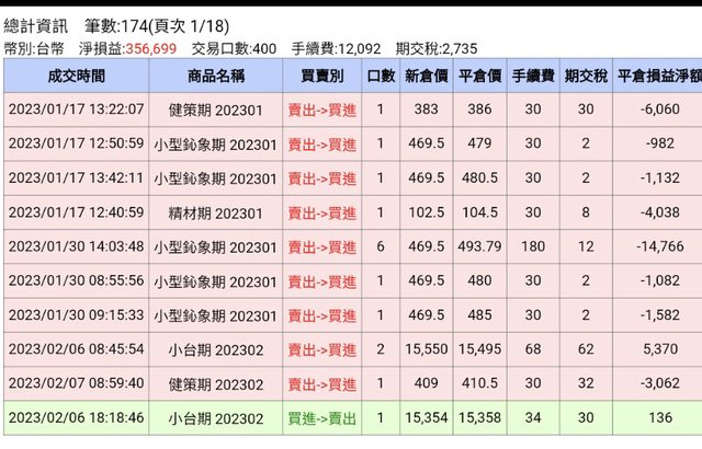 年初操作總金額459萬,以下損益包含實現與未實現。