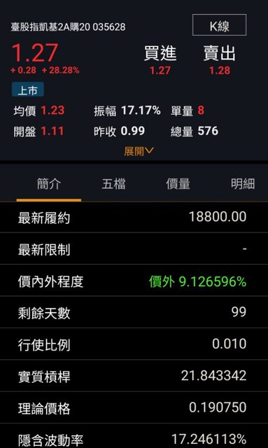 大家好,我是san5229啦 上週遇到股市回跌,看準美股nasdaq指數還在漲 而台股也剛碰月線準備回彈 趁這個機會買了短期倍率算最高的權證 買了對照台指期的認購權證,用小錢搏大錢 跟大家分享一下這個交易方式 如果自覺有高成功率的標的可以試試看 "高風險"若跟自己想的不同反向會賠爆,最多歸零 這檔槓桿快22倍,要去賺魚尾的自己注意風險 https://i.imgur.com/CEnNIPO.jpg