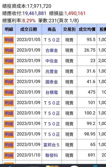 更新1 背景 曾經在2008金融風暴 憑藉超強神運 跟友人借了20萬 從一口小台開始 在期貨市場海撈四千多萬 當然期間也到龍山寺當了三次遊民 來到2023年做吃山空 更新2.... 不是不滿足,而是在2020年all in 反一 就本版鄉民眼裡 弱智中的弱智..... 正文開始 首先 我必須承認我就是一個專做價差的猥褻仔 2023年初本金大概300萬 持續進進出出股市,雖有獲利 總覺手續費損耗過大 因此陸續出清手中持股 https://i.imgur.com/isCp8Jp.jpeg