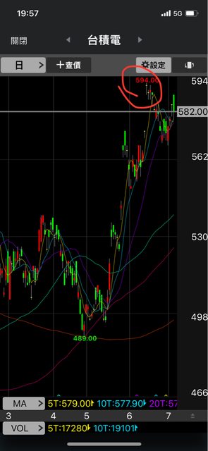 前波的高點當天最低是594