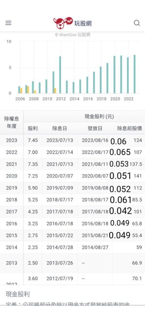 下圖是過去幾年除權息前一天的股價跟股利表格