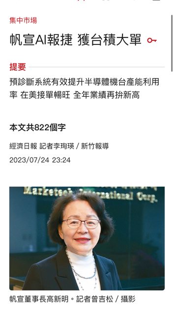 ------------------------------------------------------------------------- 1.發標的文未充實內文,多空理由不充實者,板規1-1-5或4-4處份 2.進退場機制若非長期投資,請輸入停損價,否則依板規1-1-6處份 3.請依格式輸入內容,未依格式者板規1-1-2砍文處份。 標題請使用以下格式:股號.市場碼+股名+分類 (市場碼:TW US HK CN JP KR...) ex [標的] 2330.TW 台積電 長期不停損多 ex [標的] TSLA.US 特斯拉 馬斯克火星多 ---------------------按ctrl+y 可刪除以上內容。---------------------------- 1. 標的: 6196帆宣、6414樺漢歷史多 2. 分類:多 3. 分析/正文: 帆宣,昨天出AI相關新聞 https://i.imgur.com/GwUhgql.jpg