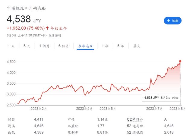 → imlucky : 川崎汽船是一直創歷史新高嗎? 08/03 11:07