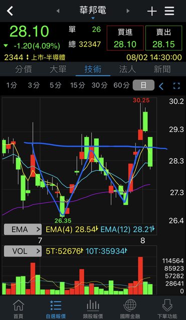 推 senma : 建議搭配大盤,例如現在是殺盤,就別期待個股是漲 08/03 21:14