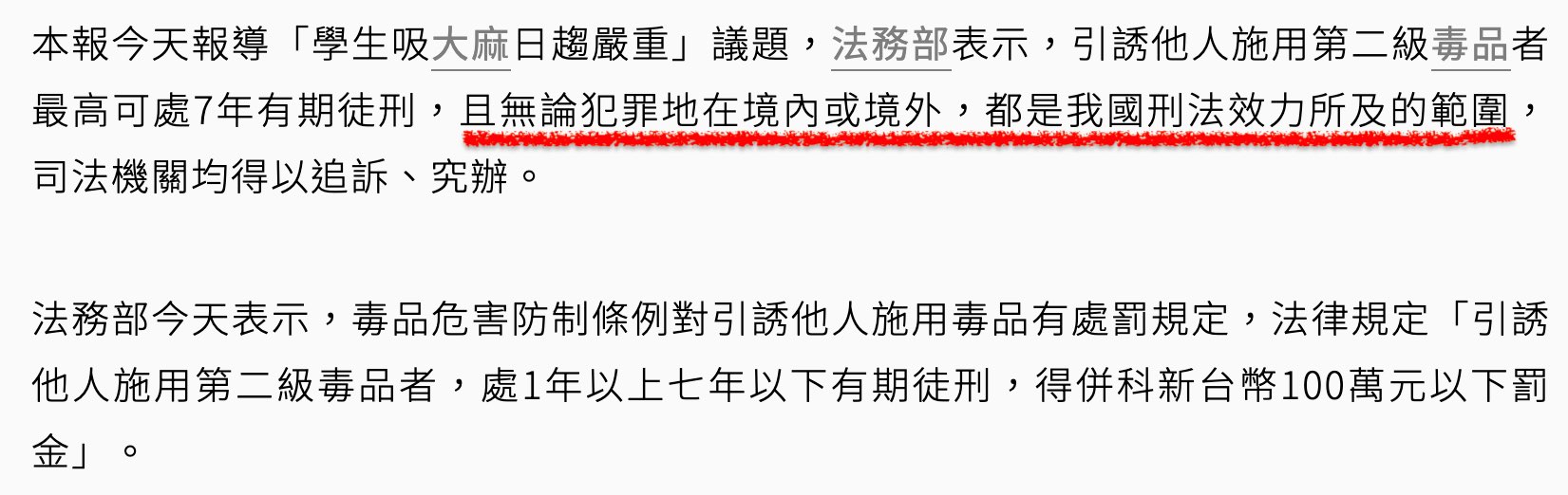 nakayamayyt : 法務部就說刑法第五條境內外犯罪都可以管啊 08/11 16:04