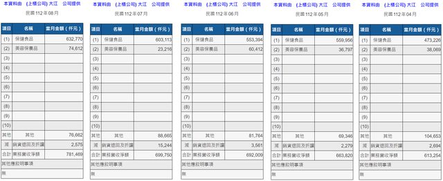原文標題:大江(8436)8月營收連四月攀高,Q3營收拚雙增,年底前向上可期 原文連結:https://fnc.ebc.net.tw/fncnews/stock/163773 發布時間:2023/09/05 14:05 財訊快報 記者署名:記者何美如報導 原文內容: 保健食品大廠大江(8436)8月營收連五個月往上,單月營收7.81億元,月增11.7%、年增 9.15%,主要是中國市場持穩,歐美市場高成長拉動。下半年進入傳統較旺季,法人預期 ,月營收有機會一路往上到年底,第三季營收可望較前一季及去年同期同步往上,下半年 營收、毛利率都可望優於上半年。 大江在中國市場回穩,雖然還沒看到強力復甦,但業績維持穩健表現,保健品、美容保養 品需求都穩健增長,與客戶合作的新品開發、專案開啟也積極進行。歐美則是合作很多大 型案子在發酵,為驅動業績成長的主要引擎美國市場在美國總部工廠加分下,切入很多 客戶,業績維持強勁成長,猶他廠高產速的飲料設備導也在進行中。 中國市場持穩,歐美市場持續高成長表現,大江5月起營收連四個月往上,8月在各區域市 場同步向上下,營收7.81億元,月增11.7%、年增9.15%,創下2021年9月以來新高,累計 前8月營收53.23億元,年成長9.47%。 下半年進入傳統較旺季,法人預期,下半年營運動能將比上半年強,營收可望呈現逐季往 上態勢,第三季營收可望較前一季及去年同期同步往上,下半年不但營收會優於上半年, 毛利率也可望改善,帶動獲利成長力道轉強。 心得/評論: 大江生醫(8436)過去是生技股王 https://i.imgur.com/JPDgSWX.jpg