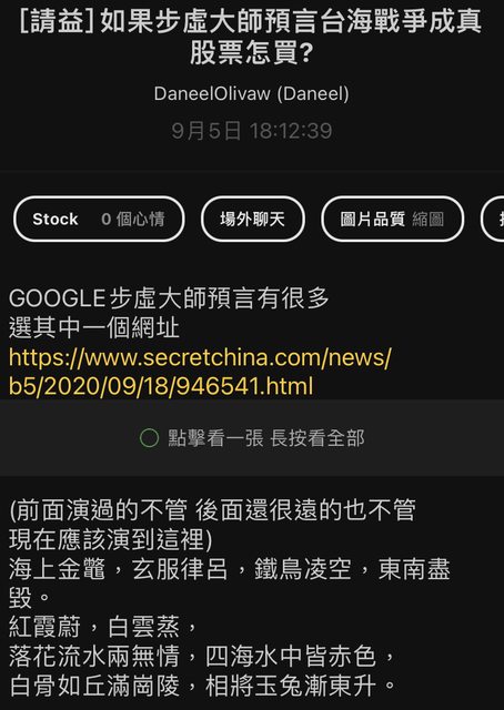 但這裡畢竟是股版,倘若有不吐不快之際,望請移駕他版宣洩