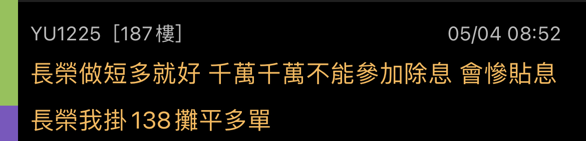 → YU1225 : 我除息前就在八卦版說要參加長榮除息了好多篇XD 09/08 15:42