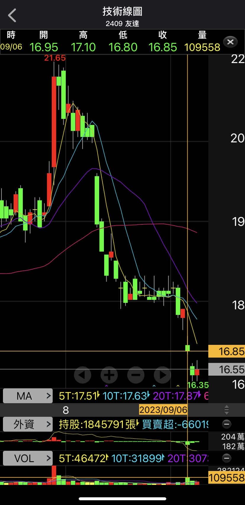 → albertk1kil : 籌碼面來看,外資已經連續賣好多天了,友達明顯與 09/11 06:31