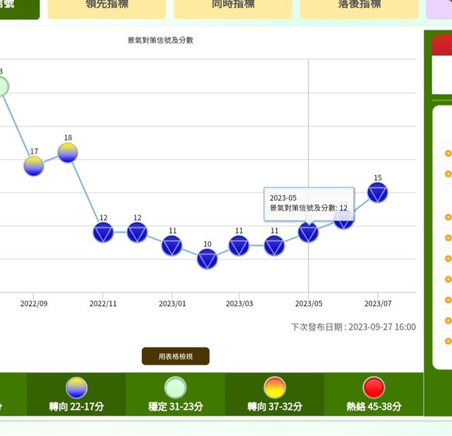 hotrain13 : 景氣燈是落後指標 09/13 00:25