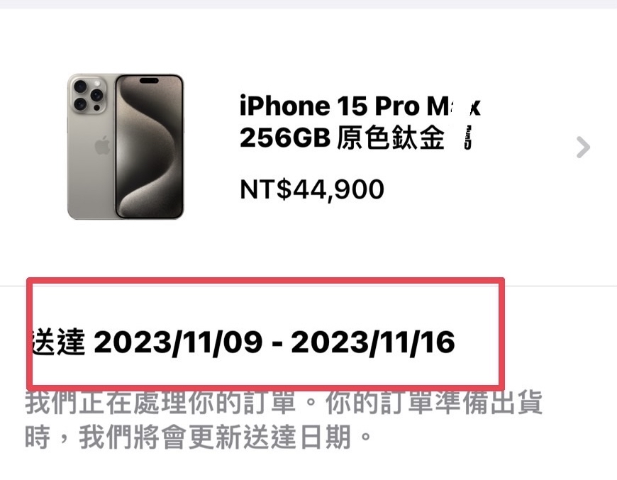 JoJo2330 : 昨晚11點左右時買,預計10月初出貨。 09/16 17:53