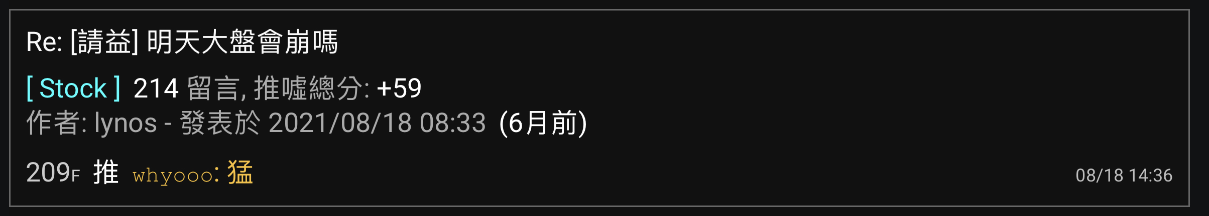 推 rosenzulu : 年初所有人也是想今年繼續下去 然後就被一路嘎上去 09/23 11:10