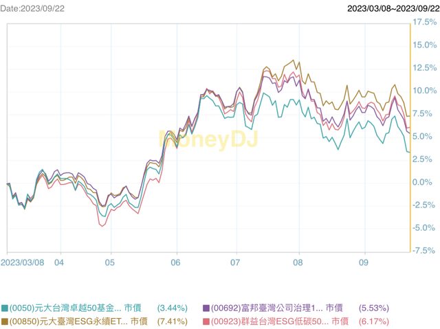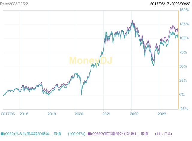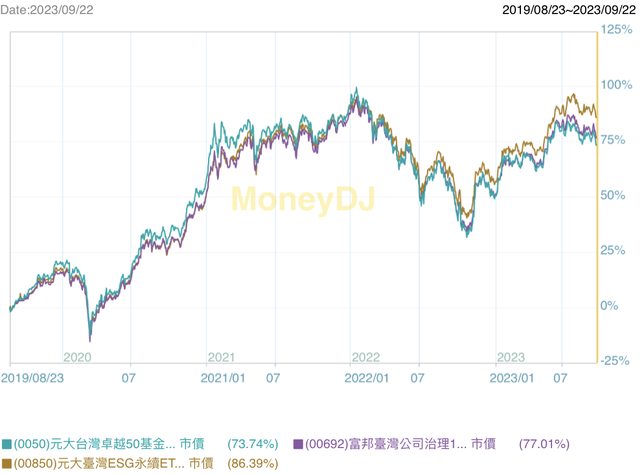 00850(2019.8.23上市),上市起績效對比前面: