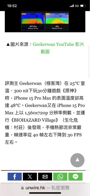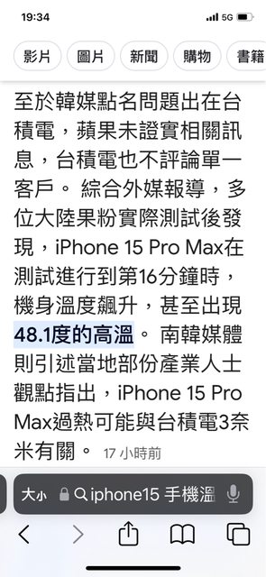 剛剛好奇查了一下 主要是 iPhone 15 pro max 使用大概三十分鐘溫度會到48度左右 https://i.imgur.com/XWJ5HW1.jpg
