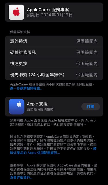 [保固] 2024/9/19 (with apple care+)