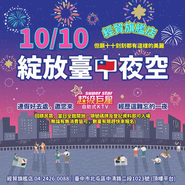焰火,不用到外面人擠人,而台中知名的連鎖自助 KTV「超級巨星經貿旗艦店」正巧就位