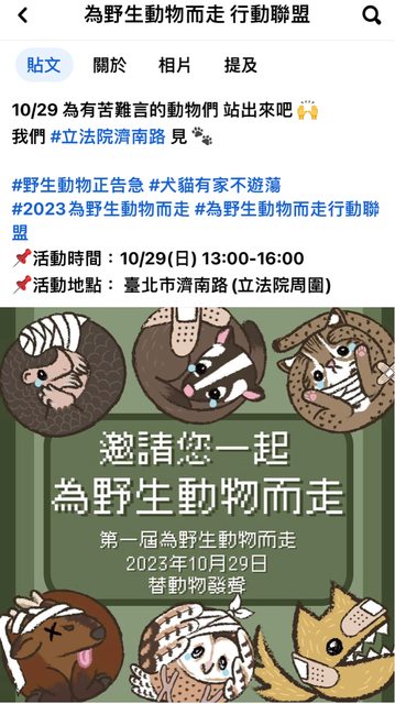 另外10/29在立法院前有 #為野生動物而走集會