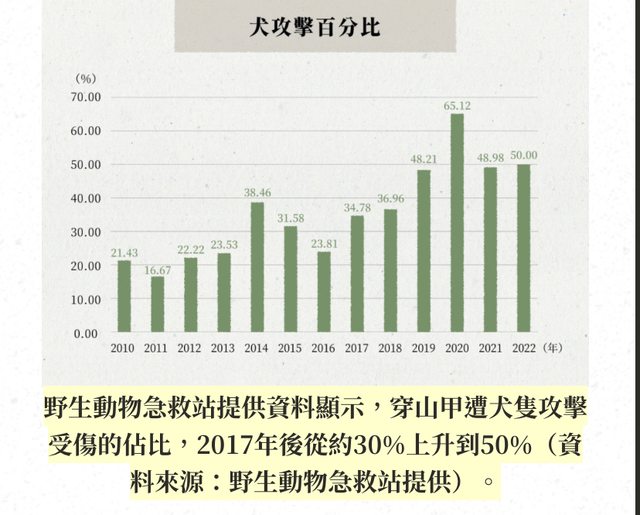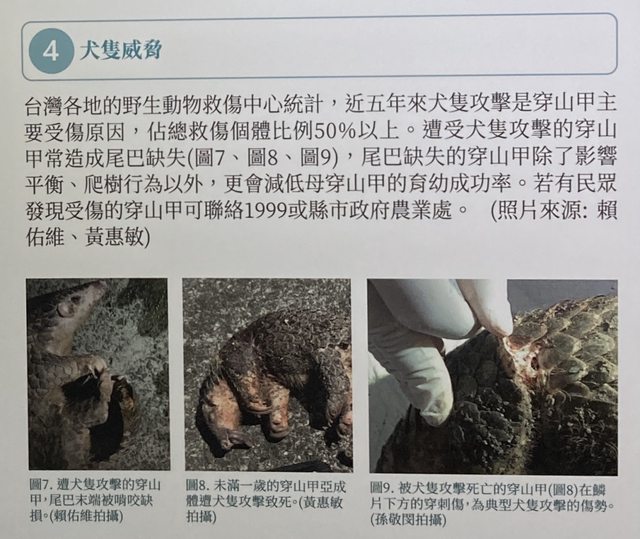 外遊蕩,除了容易生病,也可能攻擊野生動物。調查發現,近幾年救傷的穿山甲中,被浪