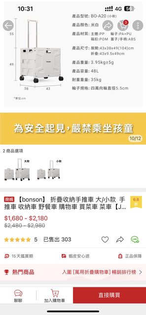 標題[商業] [交易]收納折疊手推車/野餐車/購物車