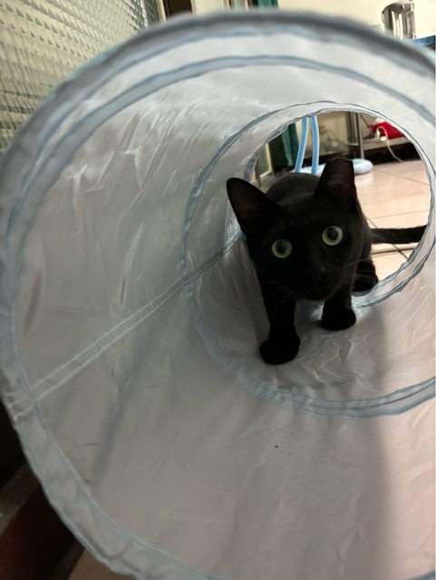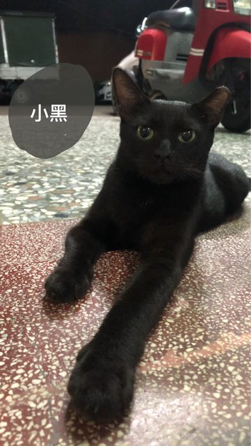小黑:長相呆萌,活潑愛玩,看到陌生人會迴避,不會哈氣,專長是吃肉泥一定要咬破袋