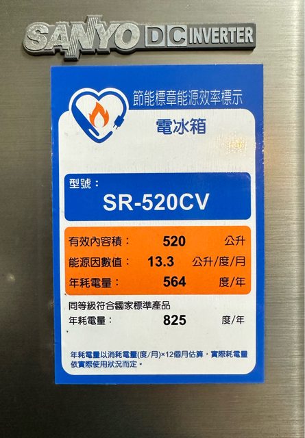 物品:三洋520公升電冰箱(SR-520CV)