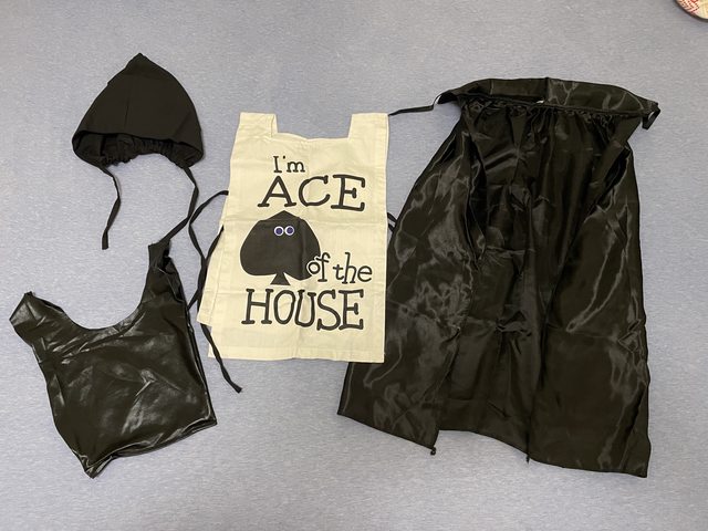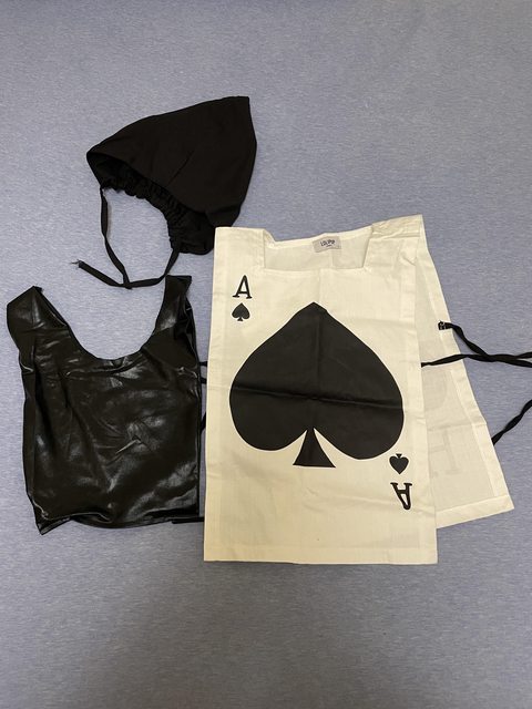 帽子+黑袋子+撲克牌衣(兩面不同圖案)+披風