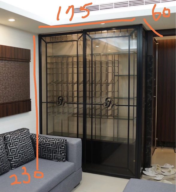 或有人要想拆走,簍空的鐵架酒櫃