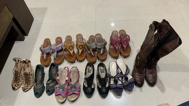 [交換] 徵求項目: 家裡整理出一堆楔形涼鞋、高跟鞋、長靴一雙 多雙有穿過痕跡,照片可見高標請繞道 幾乎都是阿瘦的品牌,很耐穿 希望替這些鞋子找到新主人 (其中有一雙藍色楔型涼鞋的幾乎全新!) 鞋碼大約都是5.5號