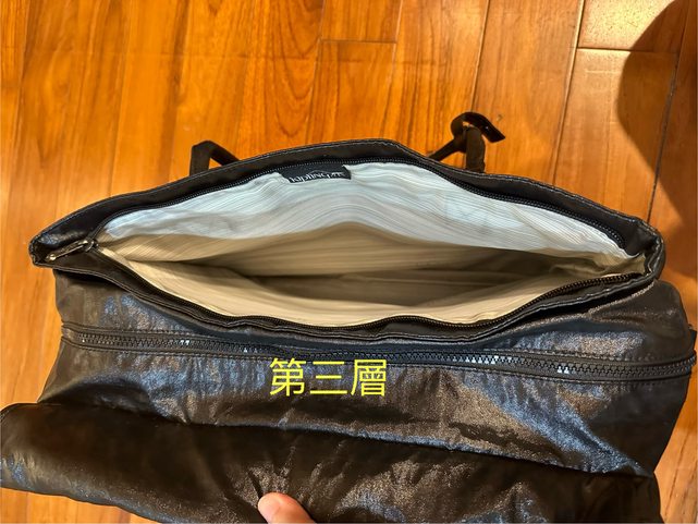 物品名稱:Kipling黑色側背包/可做公事包及電腦包 物品說明: 1. 大小: 40x28x13 (cm),可提可側背,可放15吋筆電 2. 有使用痕跡,內裡夾層因為是白色所以有泛黃,不介意者再來信 3. 總共有三層,詳細可參考照片 物品實照:
