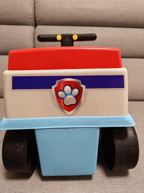 只在室內玩,可以坐到三四歲,貼紙有些翹邊,附上毛毛和阿奇的車子,坐墊打開能變成