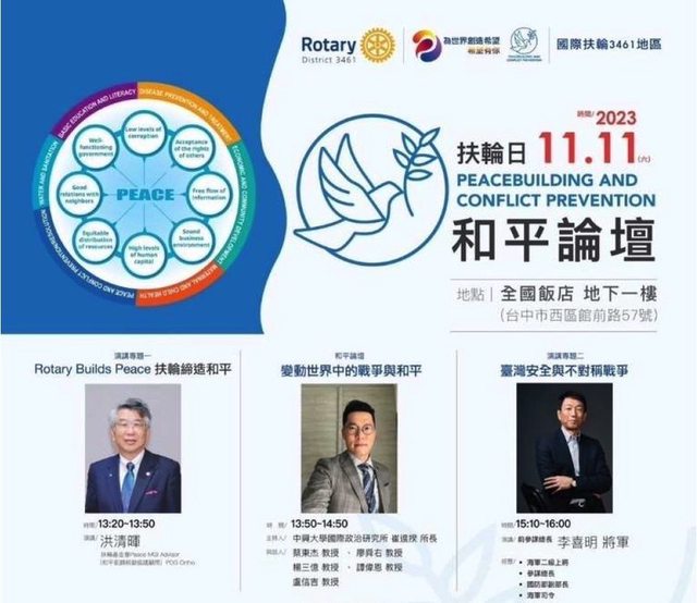國際扶輪3461地區舉辦「和平論壇」,宣揚扶輪締造和平及防止衝突對抗的貢獻,集合二千