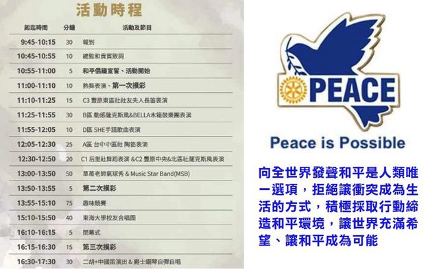 日活動,與扶輪社友共同倡議和平,照顧弱勢團體,及支持環境保護。