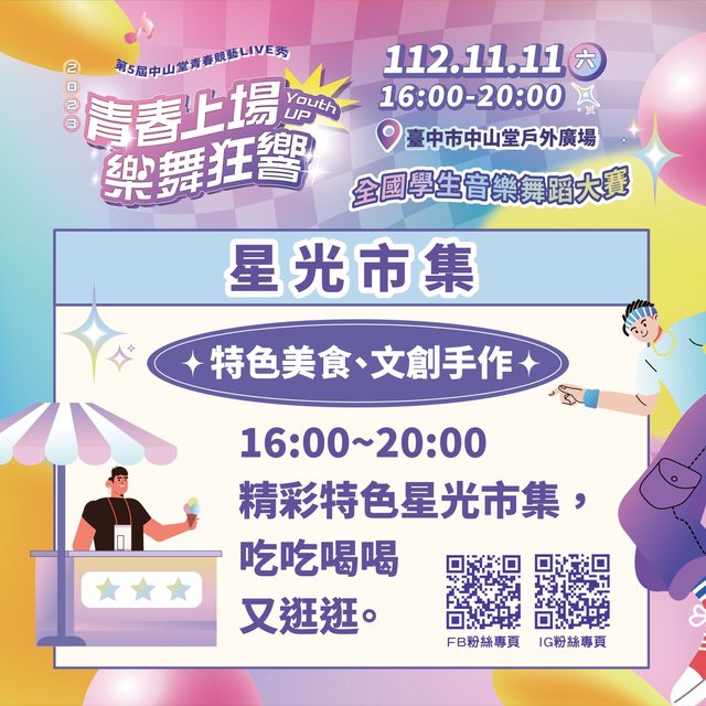友或現場民眾,一起熱情應援喊口號拿獎金,並集結特色美食與文創手作星光市集,以及歡