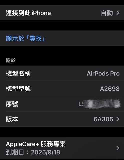[保固] 有買AppleCare,所以保固到2025/09/18