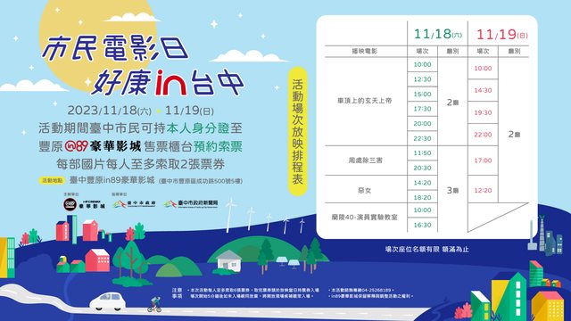 標題[資訊] 11/18-11/19 台中市民電影日