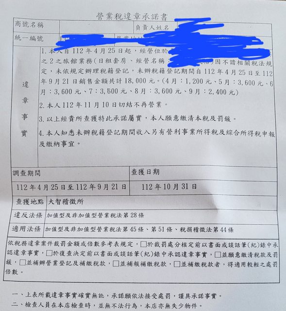 噓 sangotai : 違法經營未繳稅就乖乖繳罰單 11/18 16:32