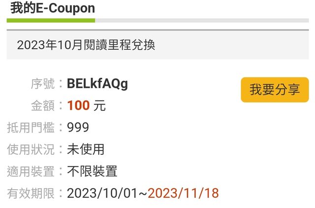 標題[贈送] 博客來999折100元