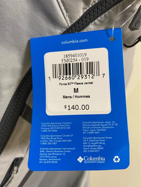 出售物品3: 全新男款Columbia PFG Force XII刷毛連帽外套 - M號 灰色 售價:2500