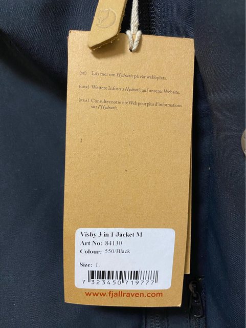 出售物品6: 全新男款Fjallraven Visby 3-in-1 Jacket - 黑色 L號 售價:9500