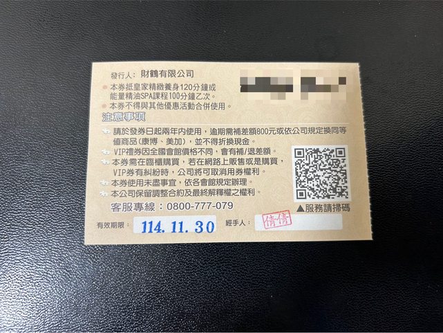 泰晶殿近期調整了價格,現場按摩消費價格為每次 $2,200,並且將按摩券更改為藍色。