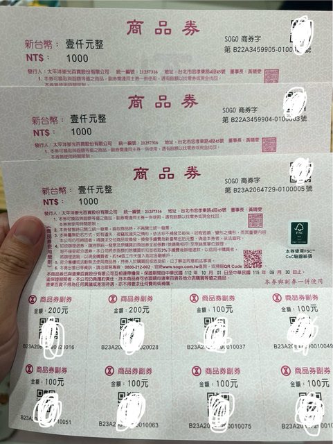 標題[商業] 遠東SOGO禮券3000元 (85折)