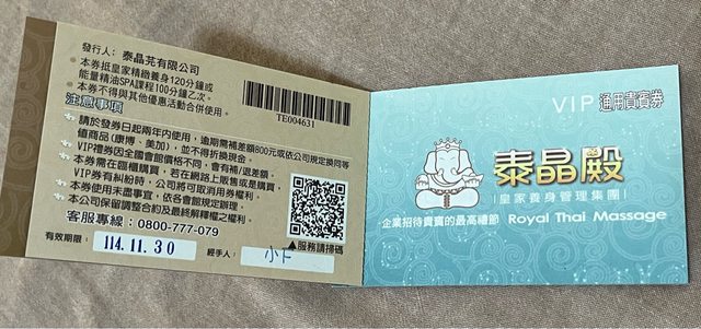 物品:泰晶殿VIP貴賓券